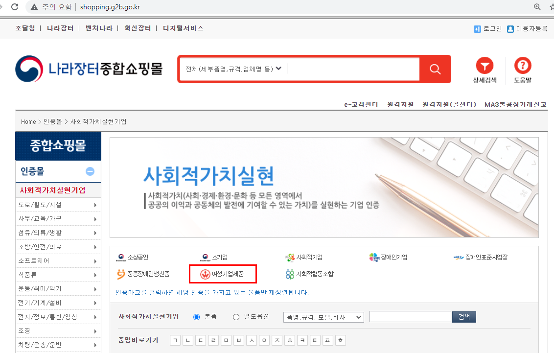 여성기업은 조달청 나라장터 종합쇼핑몰에 사회적가치실현 인증으로 다양한 혜택이 있습니다.