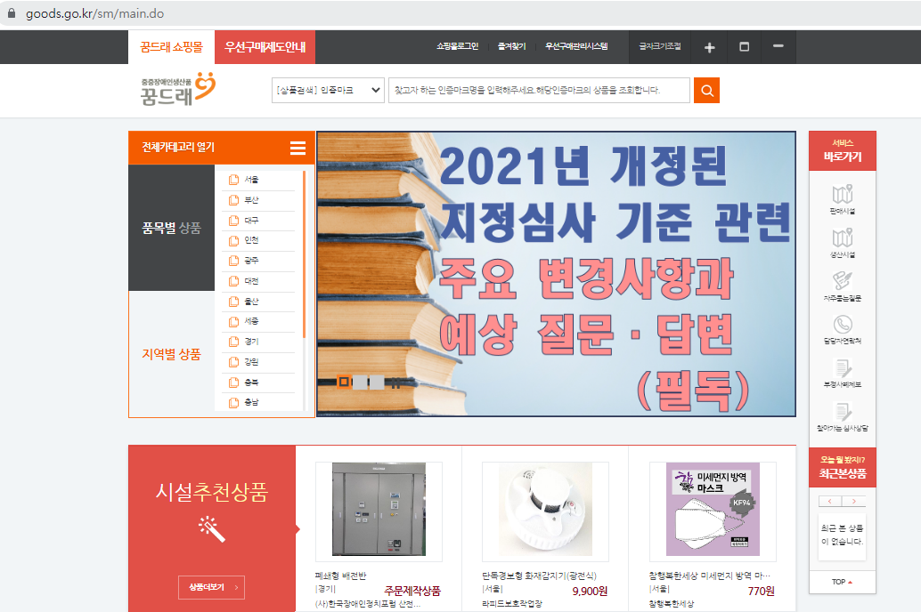중증장애인생산품 인증제도는 사회적약자에 대하여 공공물품을 우선구매하도록 하는 제도입니다.