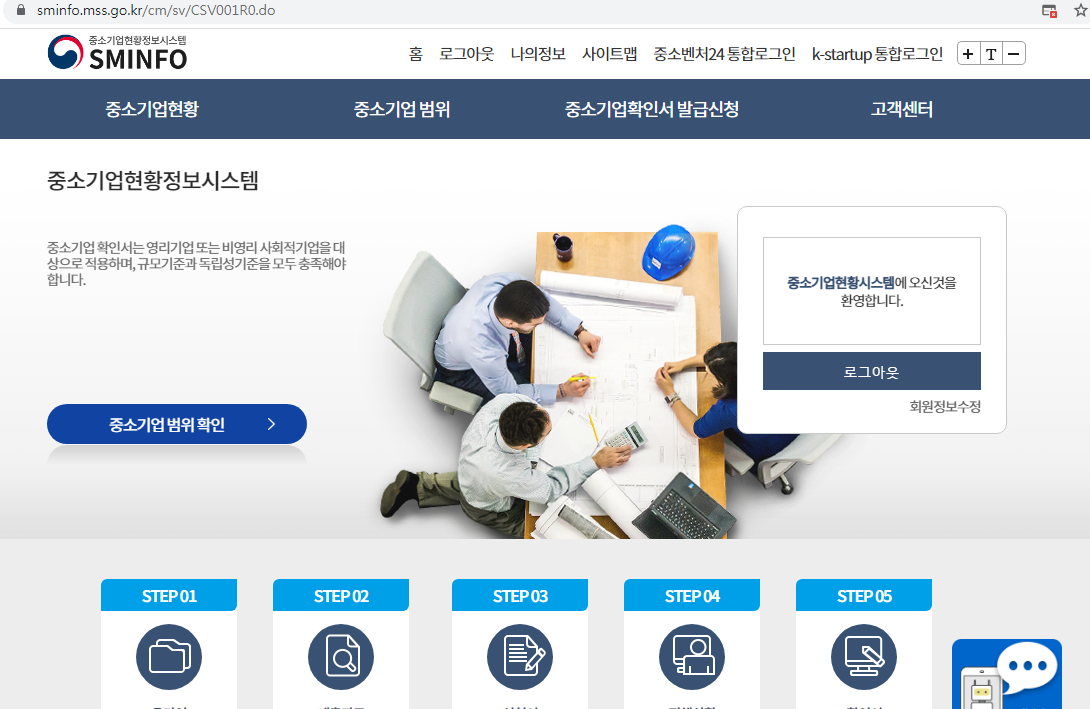 신청서 작성을 통해 중소기업 확인서를 직접 발급하시면 됩니다.