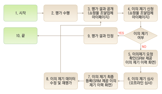 - 계약상대자는 평가결과에 대하여 이의가 있는 경우 평가결과를 통보받은 날로부터 7일 이내에 이의제기심사신청서(별지)와 증빙자료를 첨부하여 평가담당공무원에게 이의신청