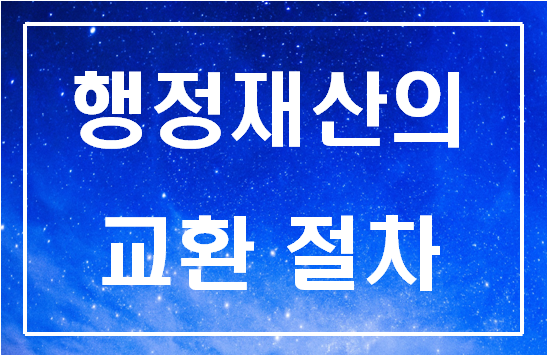 이때 행정재산의 교환에 대해서는 일반재산의 교환에 대한 규정을 준용하도록 하고 있습니다(「국유재산법」 제27조제2항 및 「국유재산법 시행령」 제19조제1항).