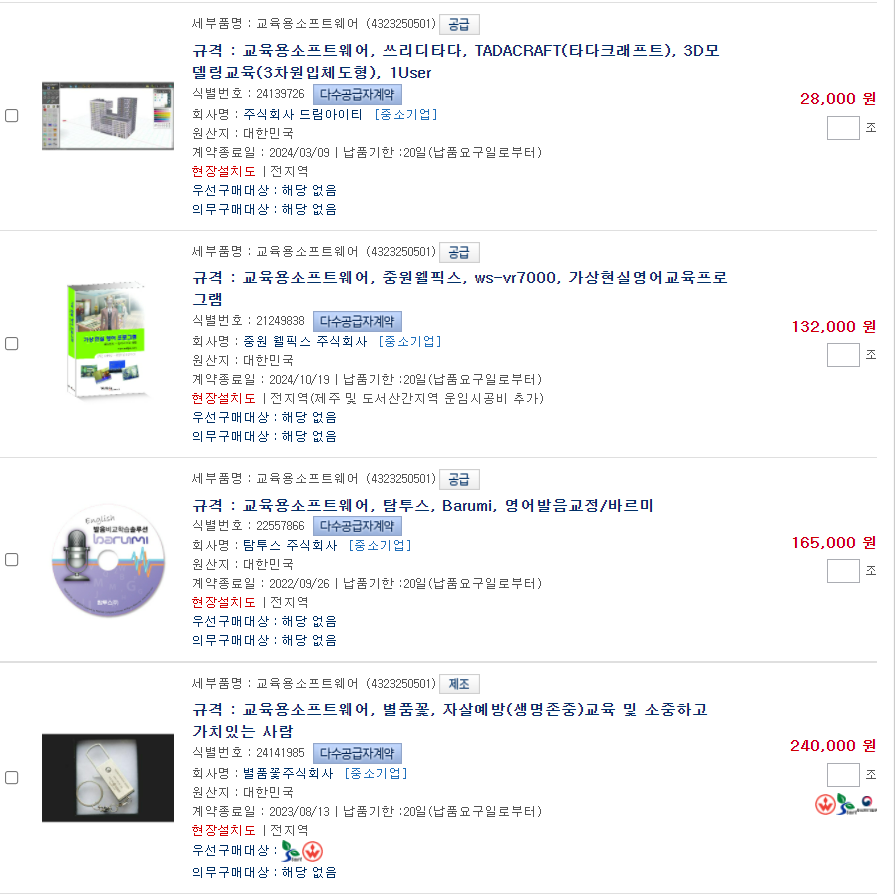 | 교육용소프트웨어 | 4323250501 | 24,000 | 조 | 납품장소도 또는 현장설치도 |