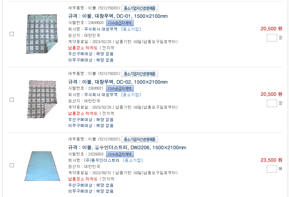 | 5212150801 | 담요 | 100,000 | 매 | |||