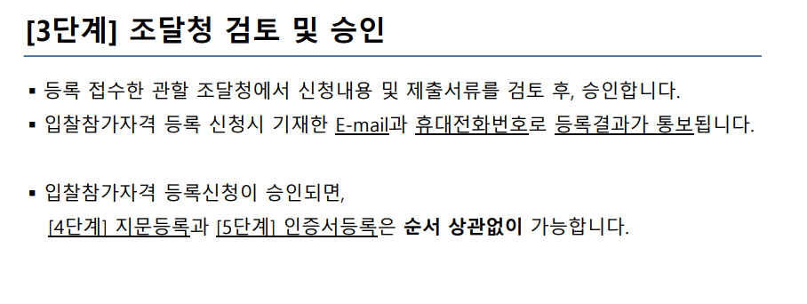 입찰참가등록을 한후 조달청의 검토 및 승인을 필요로 합니다.