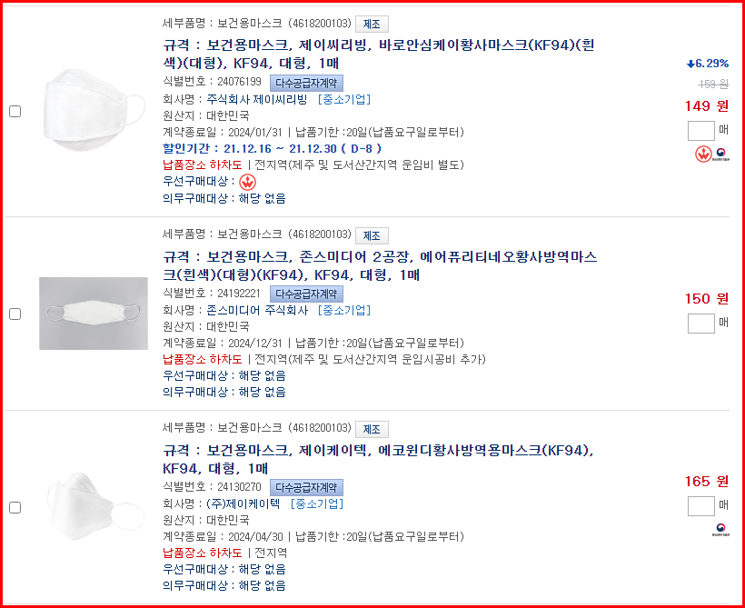 코로나19로 인하여 보건용마스크는 국가예산에서 우선사용되는 물품입니다. 물론 공급자가 증가하여 단가는 감소되지면 현재 정부에서는 가장 1순위 국가의 보급물품으로 지속적인 매출을 기대할 수 있습니다. 조달 사업에서 유의사항은 막연하게 조달용 제품을 제조하여 조달청에 공급하는 것은 당연한 것이고, 조달업체사이에서도 경쟁관계가 있으며 당연히 조달가격도 경쟁에서 중요한 부분이지만 저가격 가격정책을 할 경우 마케팅 포인트가 달라질 수 있기 때문에 신중하게 정하시길 바랍니다. 다만 조달 전문 행정사와 종합적인 상담을 받고 진행하시면 더욱 도움이 될 것입니다.
