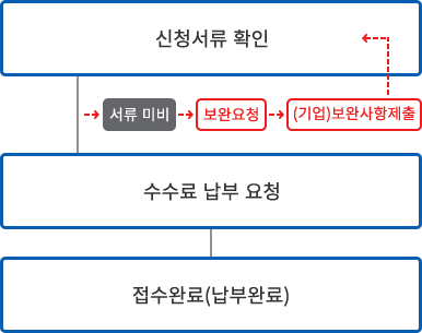 - 신청서류 완비 시 문자를 통한 확인수수료 납부