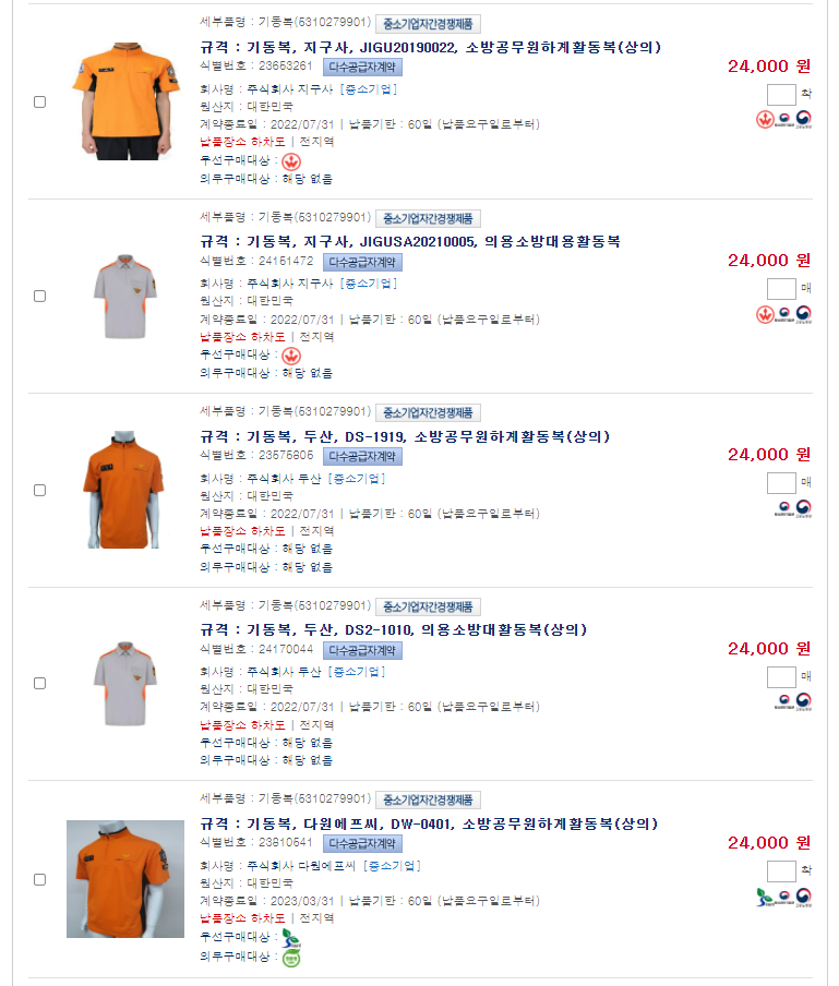 - 피복류/가죽제품은 공급자적합성확인(KC) 시험성적서 추가 제출