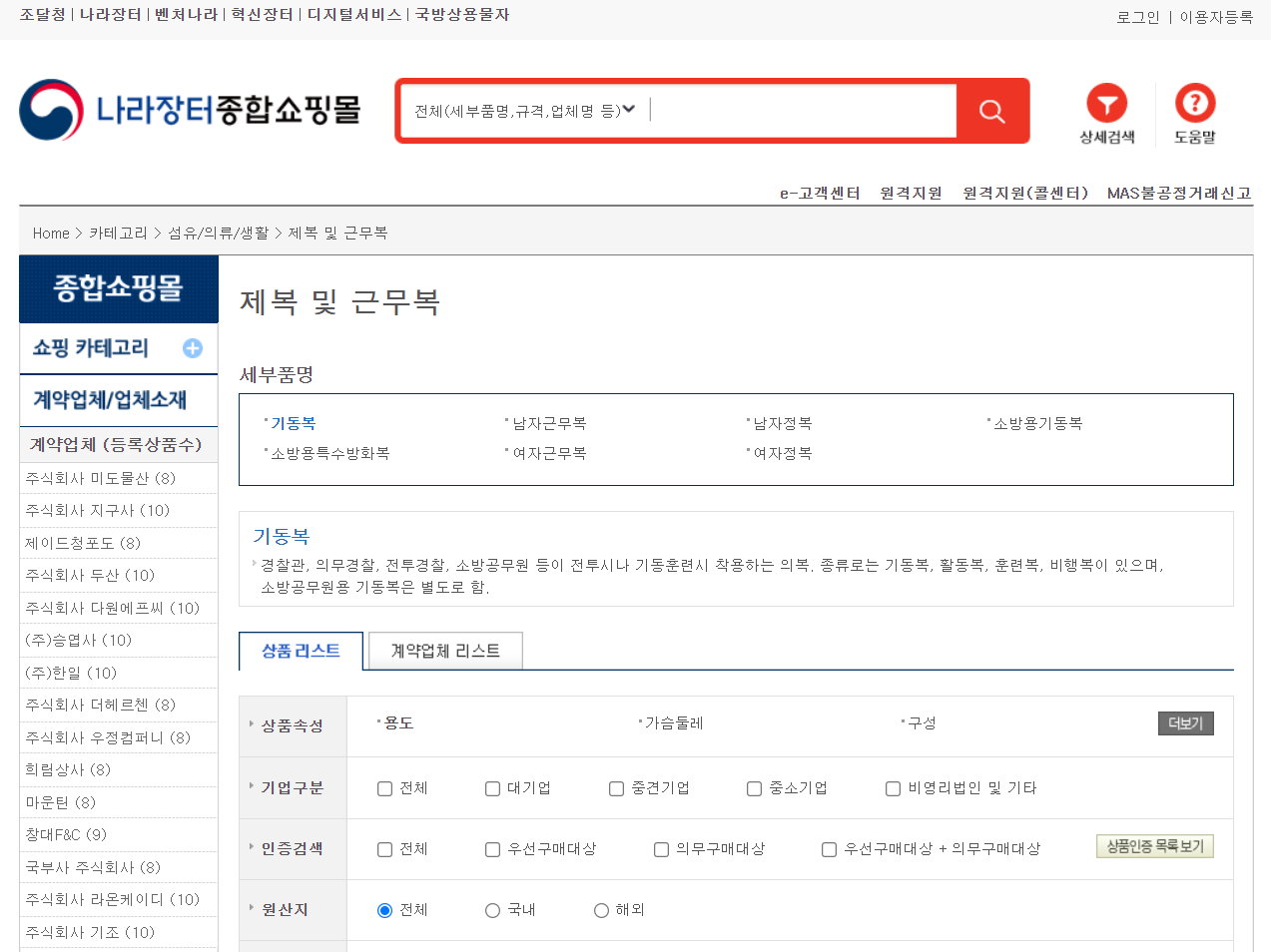 기동복 등 피복의 다수공급자계약