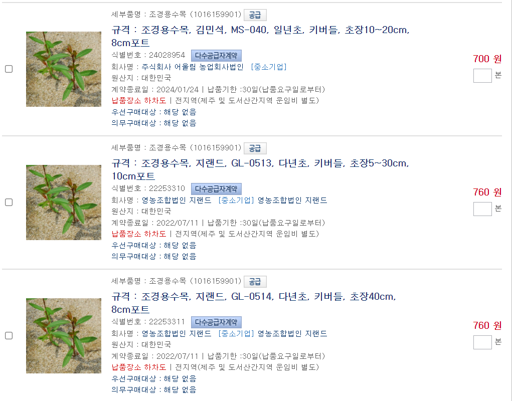 1. 조경용수목 조달공고