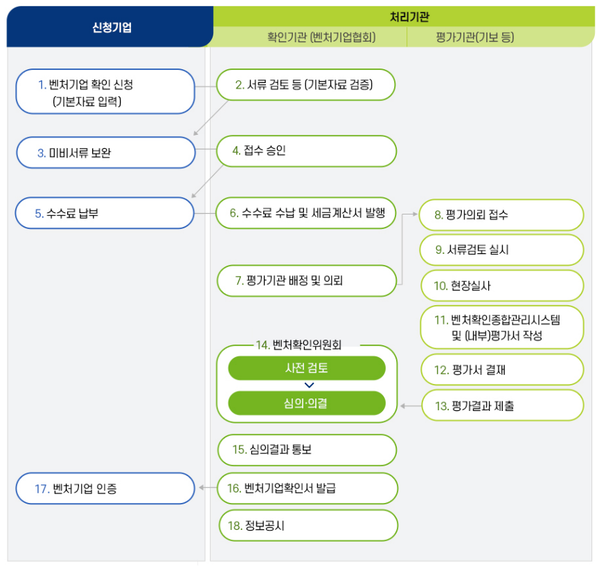 | 예비벤처유형 | 1. 법인설립 또는 사업자등록을 준비중인 자 2. 벤처기업확인기관으로부터 기술의 혁신성과 사업의 성장성이 우수한 것으로 평가 받은 기업 |