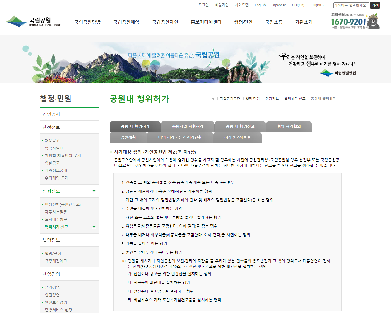 가. 공원자연보존지구에서 허용되는 행위