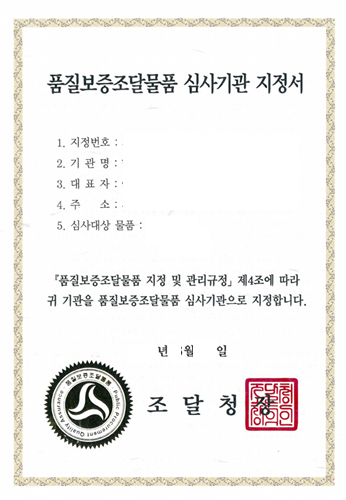 1) 품질보증조달물품 지정증서 수여