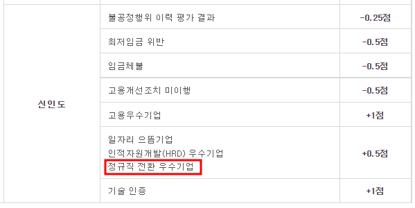 2. 정규직전환우수기업 조달청 신인도 가산점