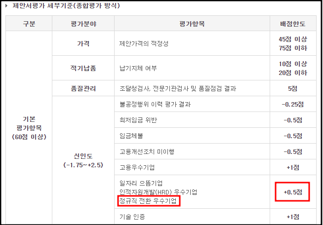 | 정규직전환기업 신인도 0.5점 가산점 (0) | 2023.04.24 |