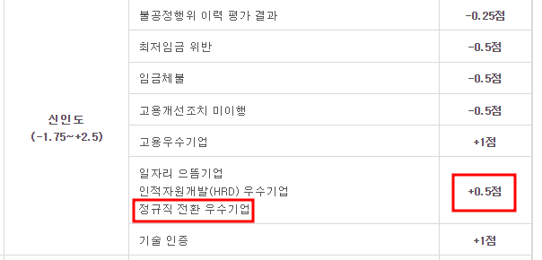 | 정규직전환기업 신인도 0.5점 가산점 (0) | 2023.04.24 |
