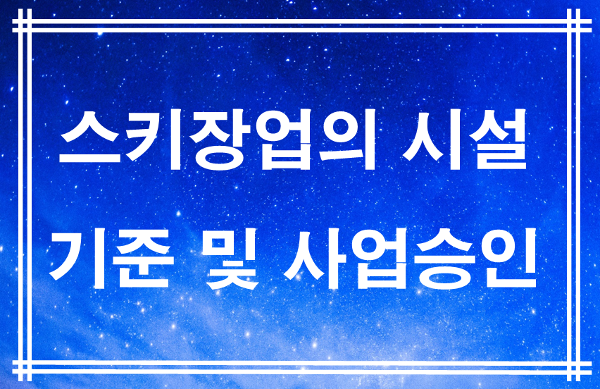 체육시설업중에서는 시설이 대규모인 스키장업의 시설기준과 사업승인에 대해서 알아보도록 하겠습니다.