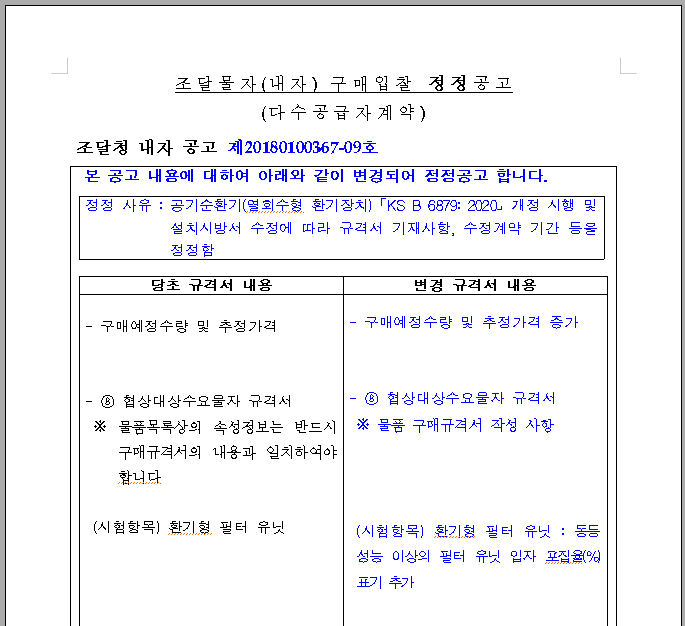 조달청 나라장터 종합쇼핑몰과 계약하기 위한 실제 거래조건을 명시한 문서입니다. 여기서 중요한 것은 문서명이 좀 길지요. 익숙해져야 이용이 가능합니다. 공고문은 본 공고가 별도 있었지만 규정이 변경되어 정정공고된 경우입니다. 위 사례는 구매예정수량이 증가된 경우로 정정공고가 난 것입니다.