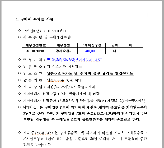 해당 사례는 구매입찰공고 사례분석입니다.