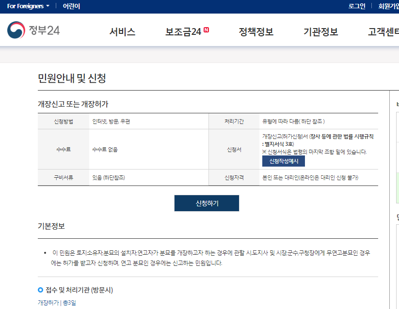 라. 개장 허가신청서(「장사 등에 관한 법률 시행규칙」별지 제3호서식)