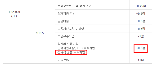 정규직전환기업은 2단계 경쟁제도에서 가산점을 0.5점을 받을 수 있기 때문에 중요사항을 정리했습니다.
