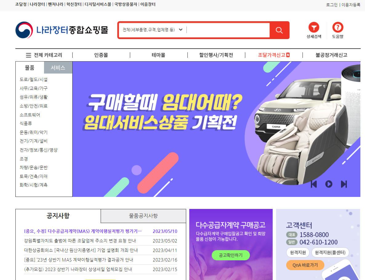 나라장터에서 종합쇼핑몰을 운영중이며, 아래 화면으로 되어 있습니다. 여기서 매우 중요한 것은 조달청에서 운영하는 나라장터에서 진정한 조달업체로서 사업을 해야 한다면 반듯이 알아야 하는 쇼핑몰입니다.