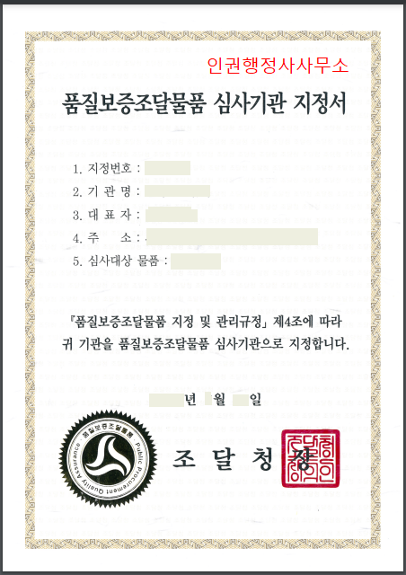 품질보증조달물픔의 지정은 전문행정사의 도움이 필요합니다.