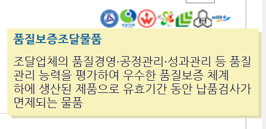 품질보증조달물품의 지정을 받은 조달업체는 위에 표시가 됩니다.