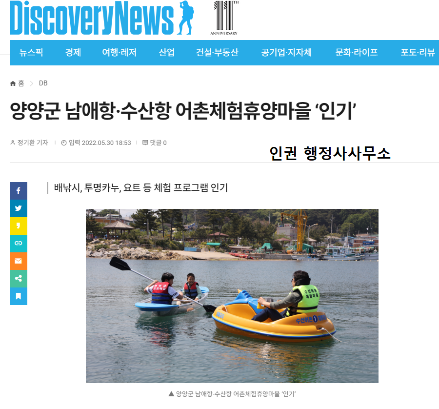 출처 : 양양군 남애항·수산항 어촌체험휴양마을 ‘인기’ < DB < 기사본문 - 디스커버리뉴스(DISCOVERYNEWS)
