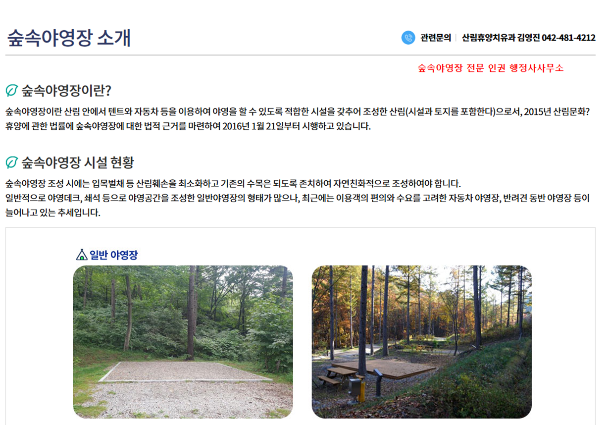 숲속야영장은 전문행정사와 함께 하시길 바랍니다.