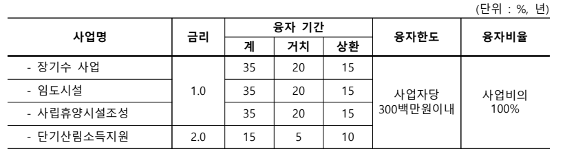 1) 산림사업 종합자금 융자