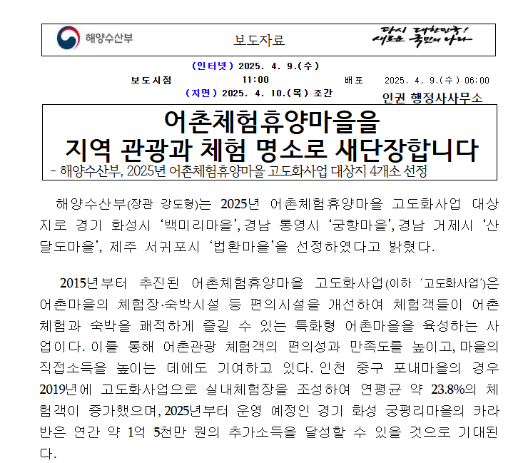 | 농어촌체험ㆍ휴양마을사업의 지정 및 혜택 (0) | 2024.12.23 |
