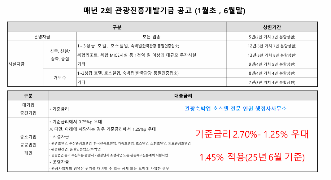 2025년 상반기 관광기금 융자지원지침을 보시고 참고하시길 바랍니다.