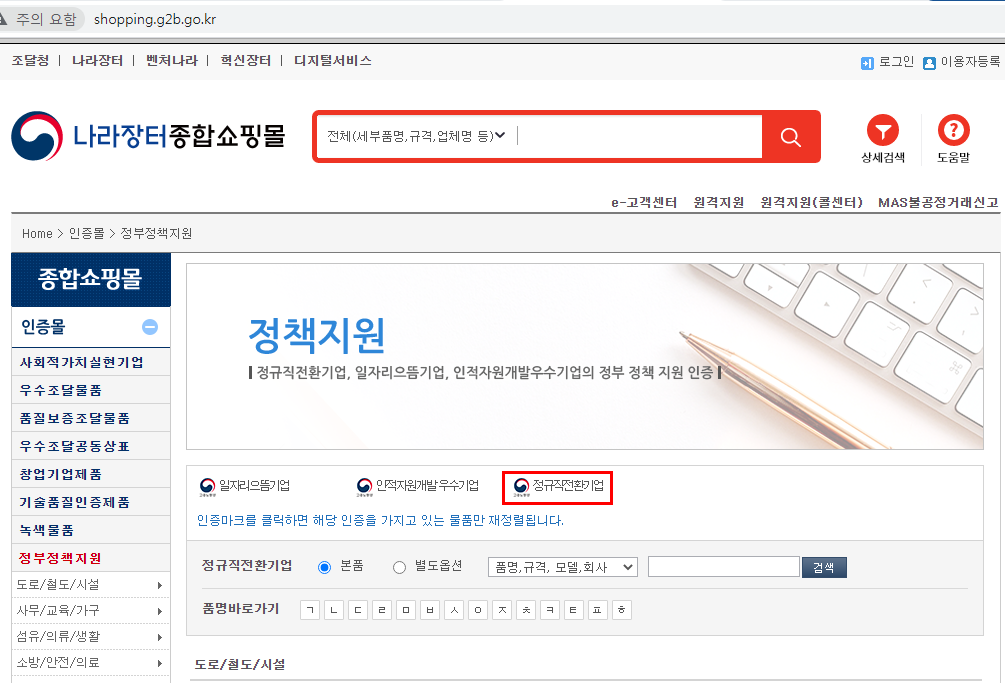 정규직전환기업이란 고용노동부의 '정규직전환 지원사업' 대상자의 선정되어최근 1년이내 정규직 전환을 이행한 기업을 말합니다.