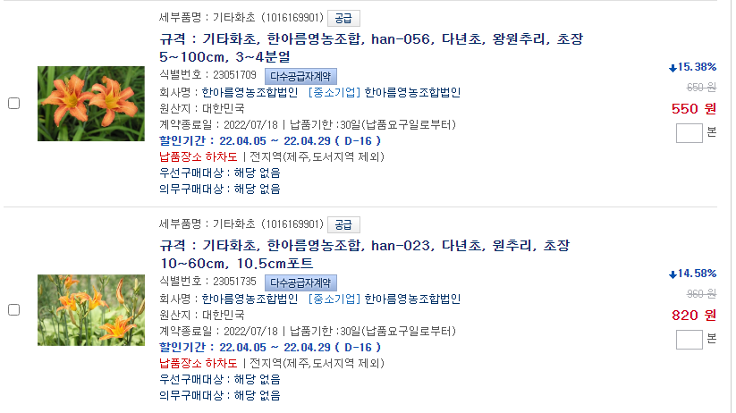 ※ 화초 생산에 필요한 비용을 제외한 화분 등 기타 부자재 가격이 과다한 품목은 협상품목에서 제외되며, 만약 계약체결이 되어도 거래정지가 될수 있음