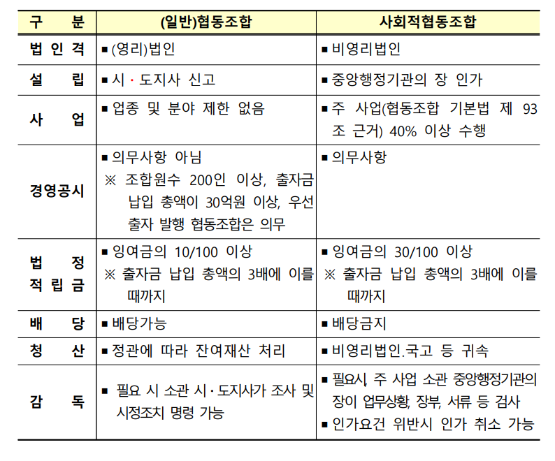 2. 일반협동조합의 비교