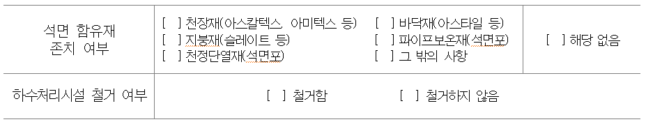 여기서 주의 사항은 석면에 대해서는 별도로 신고절차를 해서 전문업체에서 해체를 해야 하며 하수처리시설 철거에 대해서도 검토하고 관련 법령에 따라 처리해야 합니다.