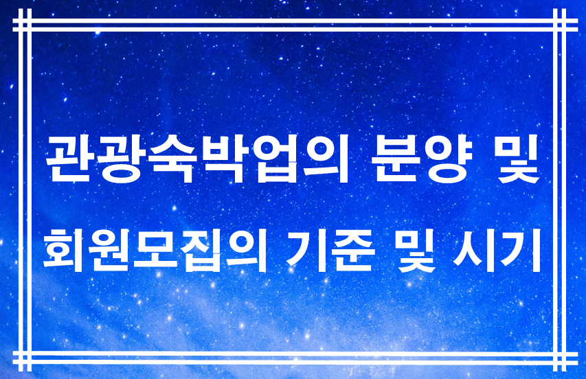 관광숙박업의 분양 및 회원모집의 기준과 시기 대해서 중요한 법적 사항을 정리했습니다.