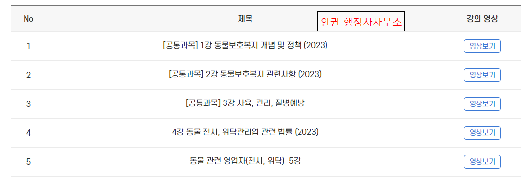 동물위탁관리업을 하기 위해서는 아래 교육을 이수해야 합니다.