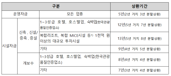 1) 호텔을 비롯한 각종 관광시설의 건설 또는 개수(改修)