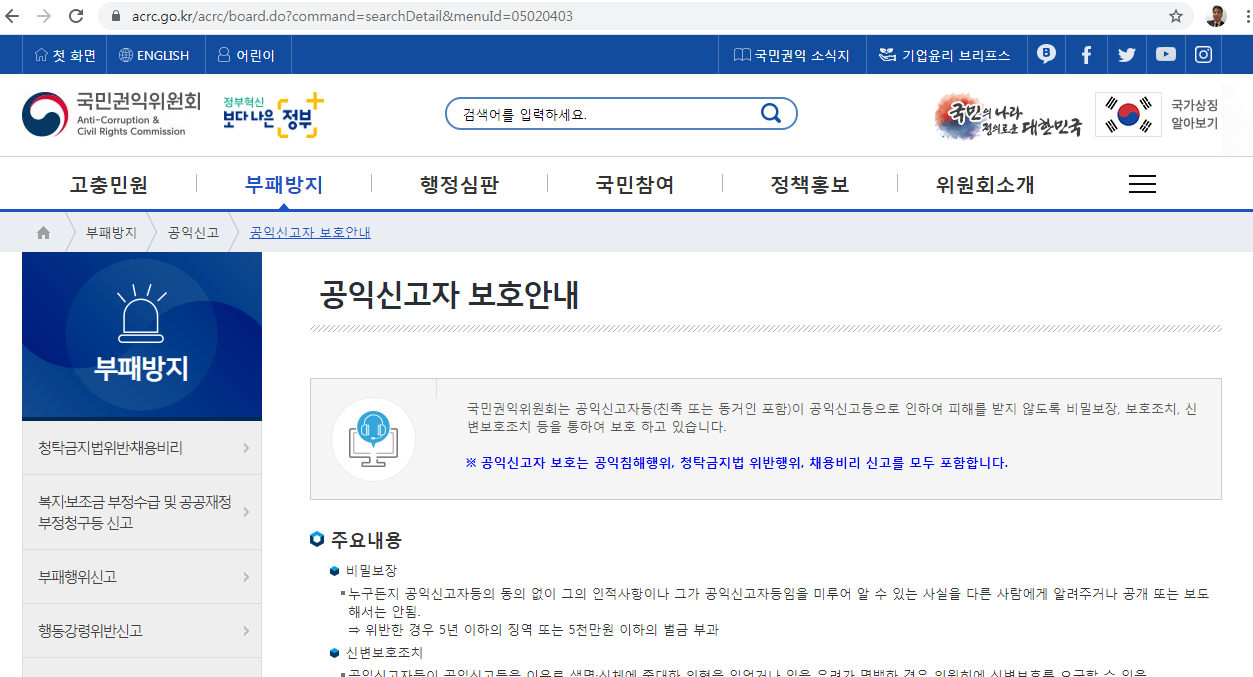 공익신고로 인하여 공익신고자에 발생할 수 있는 불이익을 보호하기 위해서 법령으로 보호하고 있습니다.