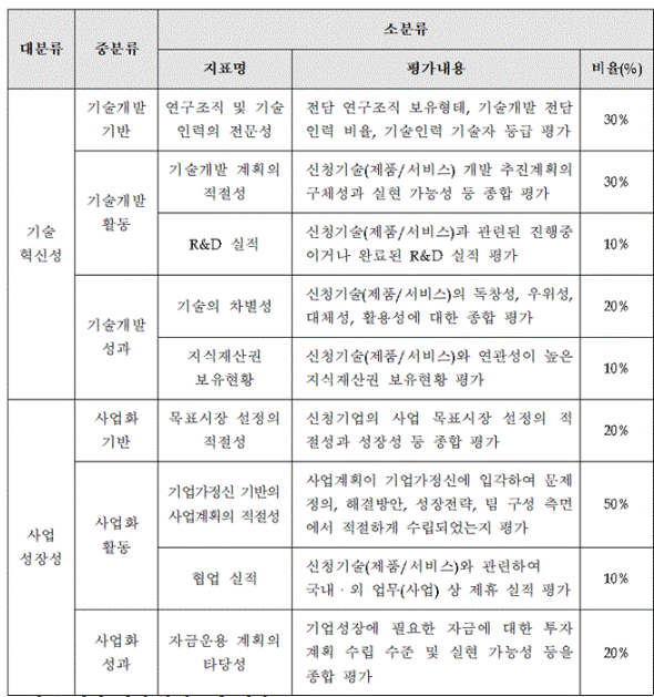 벤처기업 인증의 유형별 평가기준