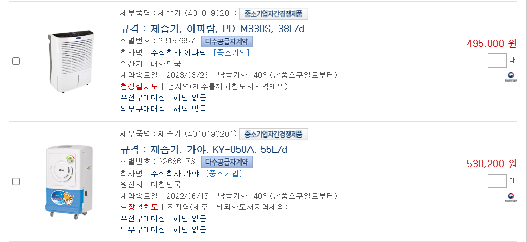 사례는 제습기입니다