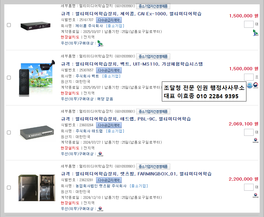 멀티미디어학습장치의 다수공급자계약