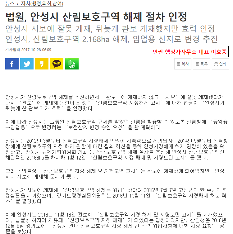 산림보호구역 지정해제 전문 이효종 행정사입니다.