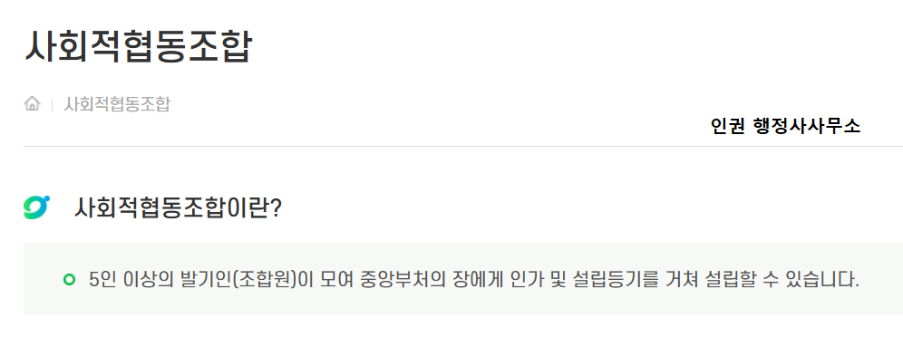 사회적협동조합 설립인가 전문 이효종 행정사입니다.