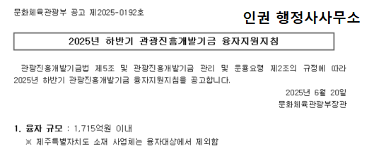 아래 규정은 2025년 하반기 규정으로 관광진흥개발기금은 매년 상반기 하반기 2회 사용할 수 있습니다.