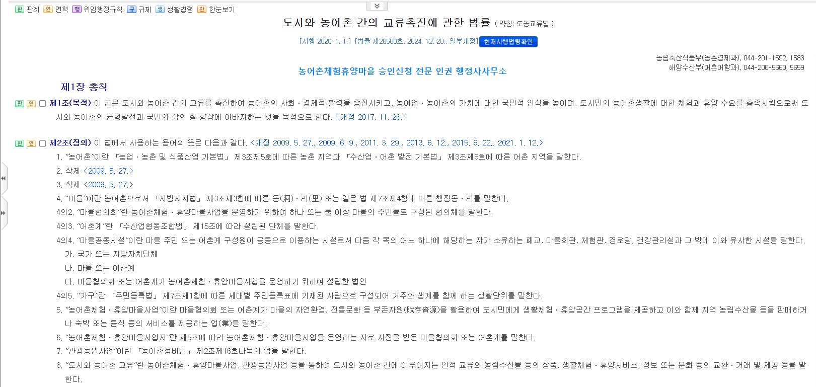 1). 「도시와 농어촌 간의 교류촉진에 관한 법률」 제2조제5호에 따른 농어촌체험ㆍ휴양마을사업의 시설