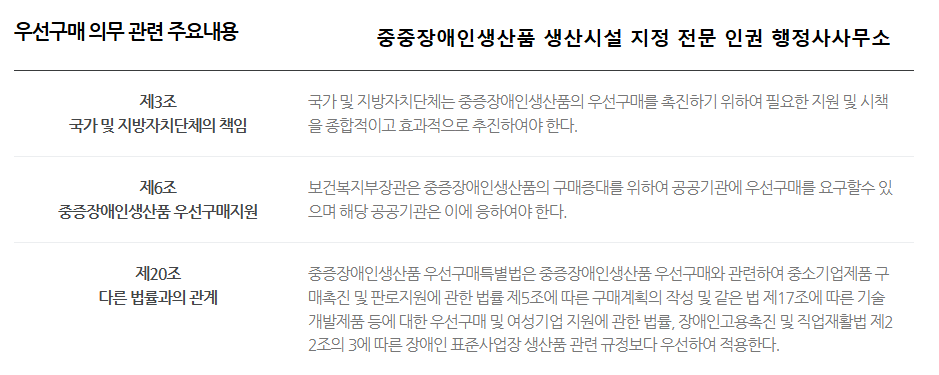 2) 중증장애인생산품 법령