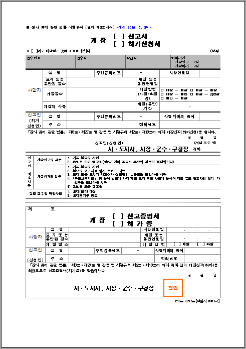 시장 등은 개장 허가신청을 받으면 개장허가증(「장사 등에 관한 법률 시행규칙」 별지 제3호서식)을 발급해야 합니다(「장사 등에 관한 법률 시행규칙」 제18조제3항).